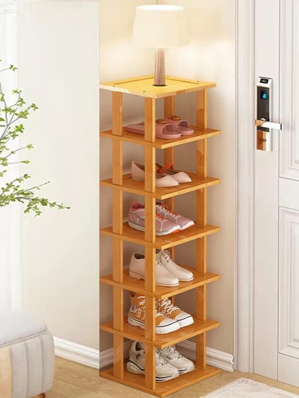 Bamboo Shoe Rack - Vertical Shoe Rack for Small Spaces, Tall Narrow Shoe Rack Organizer for Closet Entryway Corner Garage and Bedroom,Skinny Shoe Shelf Free Stackable DIY - Space Saving Storage