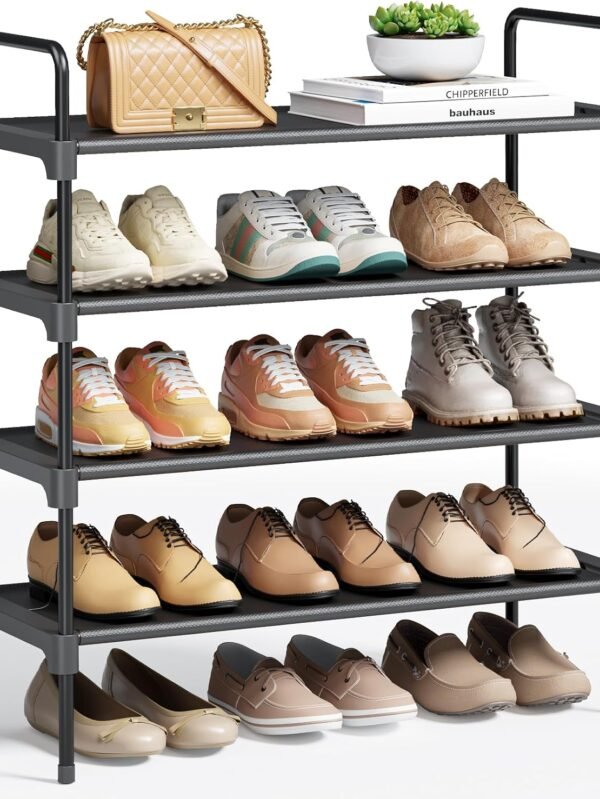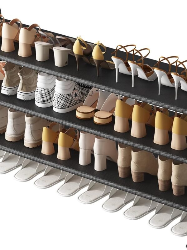 4-Tier Shoe Rack - Metal Shoe Organizer and Shoe Shelf with Handle, Easy-Assembly, Sturdy Shoe Rack for Closet, Entryway, Bedroom (Black, 26.6'' x 11.4'' x 29.5'')