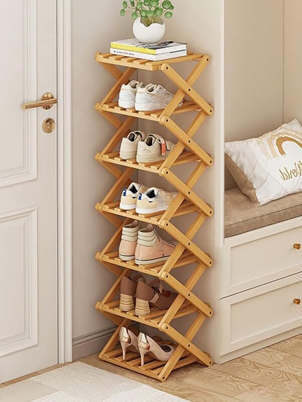 Vertical Narrow Shoe Rack, 7 Tier Portable Folding Shoe Storage Rack, Without Installation Free Standing Shoe Rack for Corridors, Bedrooms Living Room Corner and Small Spaces (7 Tier)