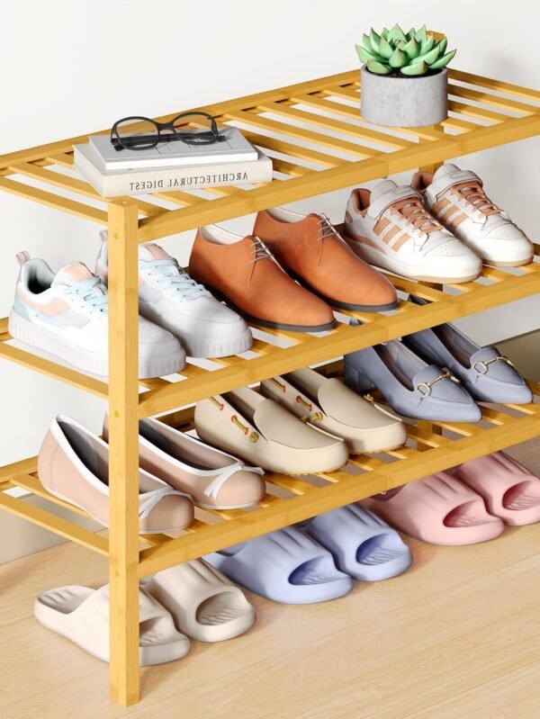Bamboo Shoe Rack for Closet, 3 Tier Wooden Stackable Shoe Organizer, Free Standing Shoes Storage Shelf for Entryway, Front Door Entrance, Natural