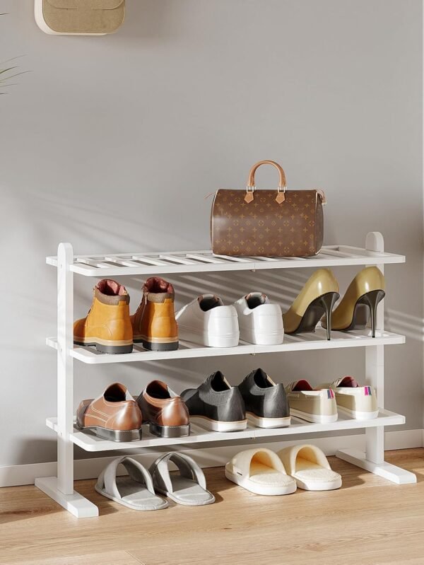 White Shoe Rack, Bamboo Shoe Rack Organizer for Closet and Entryway, Thick Wooden Free Standing Shoe Shelf for Small Spaces, Sturdy & Versatile for Bedroom, Bathroom, Garage (3-Tier)